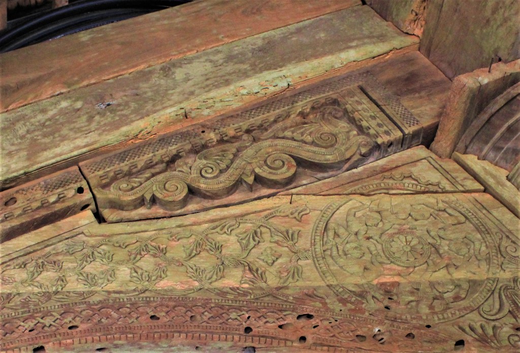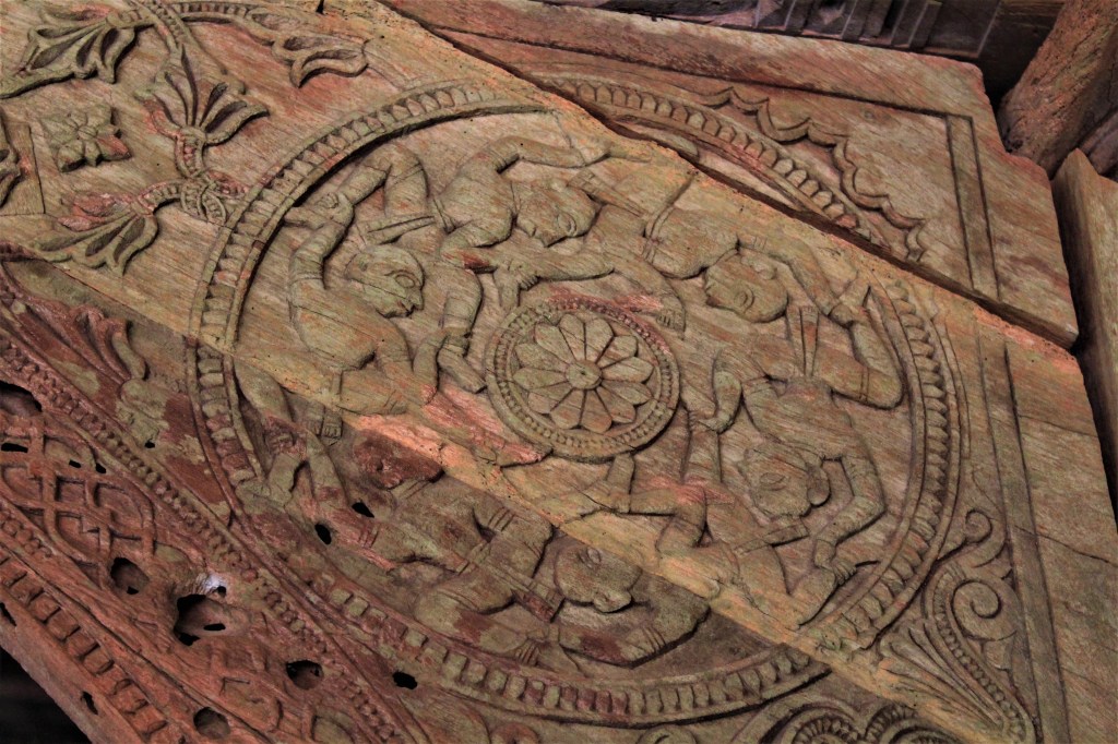 One washes the feet with warm water carried out from the steaming hot spring water. Once clean, the devotees then walk upto the Shiva temple, to seek blessings. The Shiva-linga is bathed with warm water from the spring. The association of Shiva and water bodies needs no elaboration for the manner in which it unfolds through the Hindu cosmogony. Water, as Ganga herself, and Shiva, the bearer of Ganga in his hair locks, repeats as a powerful metaphor through texts, places and narratives of performance. The narratives or Shiva or the legends of the hot springs do not find a place on the elaborate iconography at the temple. The iconography on the wood-work at Rajawadi temple, however makes up for an interesting thought experiments and an incessant will to unearth the esoteric narratives crystallized in wood.
