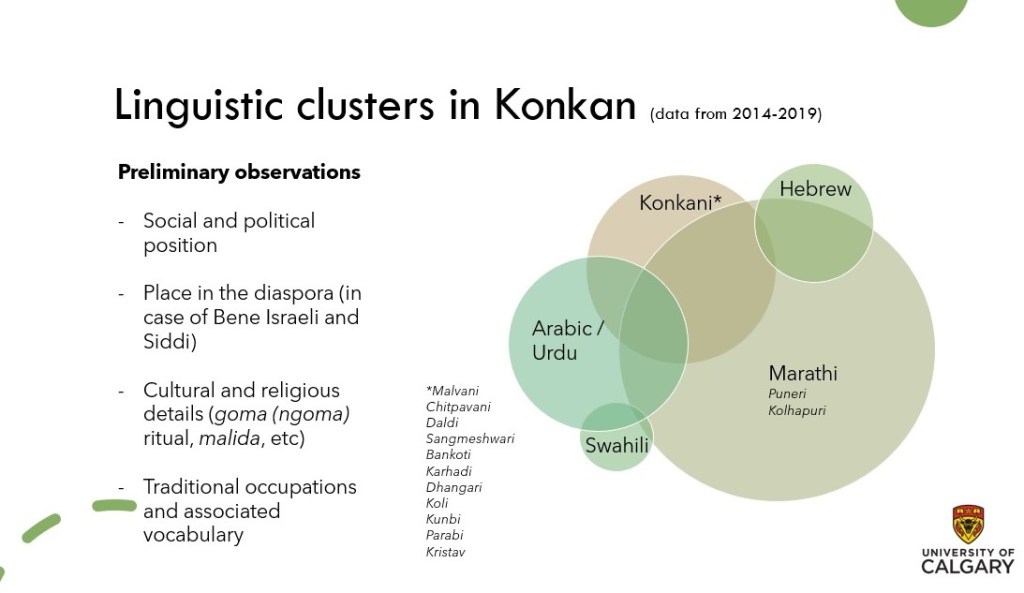 And this opened my eyes to involve a nuanced attention (and note-taking) for the linguistic axis in the anthropological research. It was natural that I scratch the surface of Linguistic Anthropology to understand “meaning-making” through language in Konkan. A dedicated stream of study “Historical Linguistics” brings forth the development of a language along with its interaction with other languages. “Sociolinguistics” taps into the social and kin relationship in the production of a common code – language. Diglossia, as it is called formally, was pronounced in the communities across Konkan and outside (myself included). Diglossia pertains to the use of one language for regular use, and another (dialect or language) for special contexts such as education, ritual, etc. This was the entry point into uncovering the layers of anthropology and language for me.